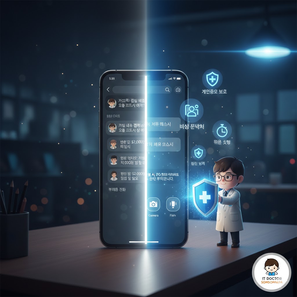 안녕하세요, IT 주치의 솜솜파파입니다!스마트폰 잠금화면, 대수롭지 않게 여기는 분들이 많으실 거예요. 하지만 잠금화면은 내 스마트폰의 첫인상이자, 개인 정보를 지키는 최전방 방어선입니다. 동시에 잘 활용하면 우리 일상을 훨씬 더 편리하게 만들어주는 숨겨진 보물이기도 하죠.오늘은 솜솜파파가 잠금화면을 철통 보안 요새로 만들고, 동시에 유용한 정보까지 띄워주는 알짜 설정 비법을 처방해 드립니다!🩺 처방 1. '알림 내용' 숨기기 (개인정보 보호 처방)잠금화면에 카톡 메시지 내용이 그대로 노출된다면? 옆 사람이 내 사생활을 엿볼 수 있습니다.**[설정] > [알림] > [잠금화면 알림]**으로 들어갑니다.[내용 숨기기] 또는 [알림 내용 표시 안 함] 옵션을 선택하세요.이제 잠금화면에서는 '카카오톡 메시지..