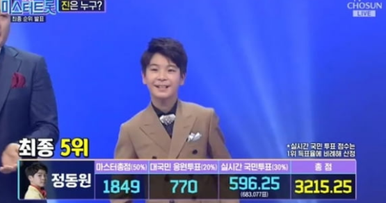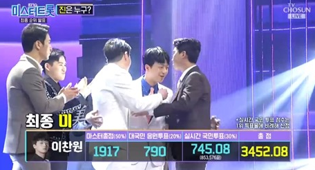 지금까지 전체 합산한 결과는 이찬원님이 1위, 2위 임영웅님, 3위 영탁님 순이었는데요.